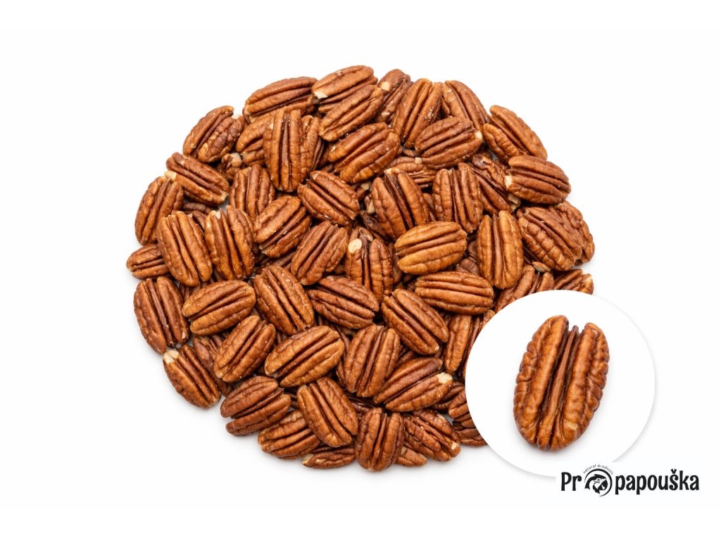 Pekanové ořechy 250 gPekanové ořechy obsahují 65–75 % tuků, dále vápník, draslík, hořčík, zinek a měď. Dodávají energii, podporují růst vlasů a nehtů.
